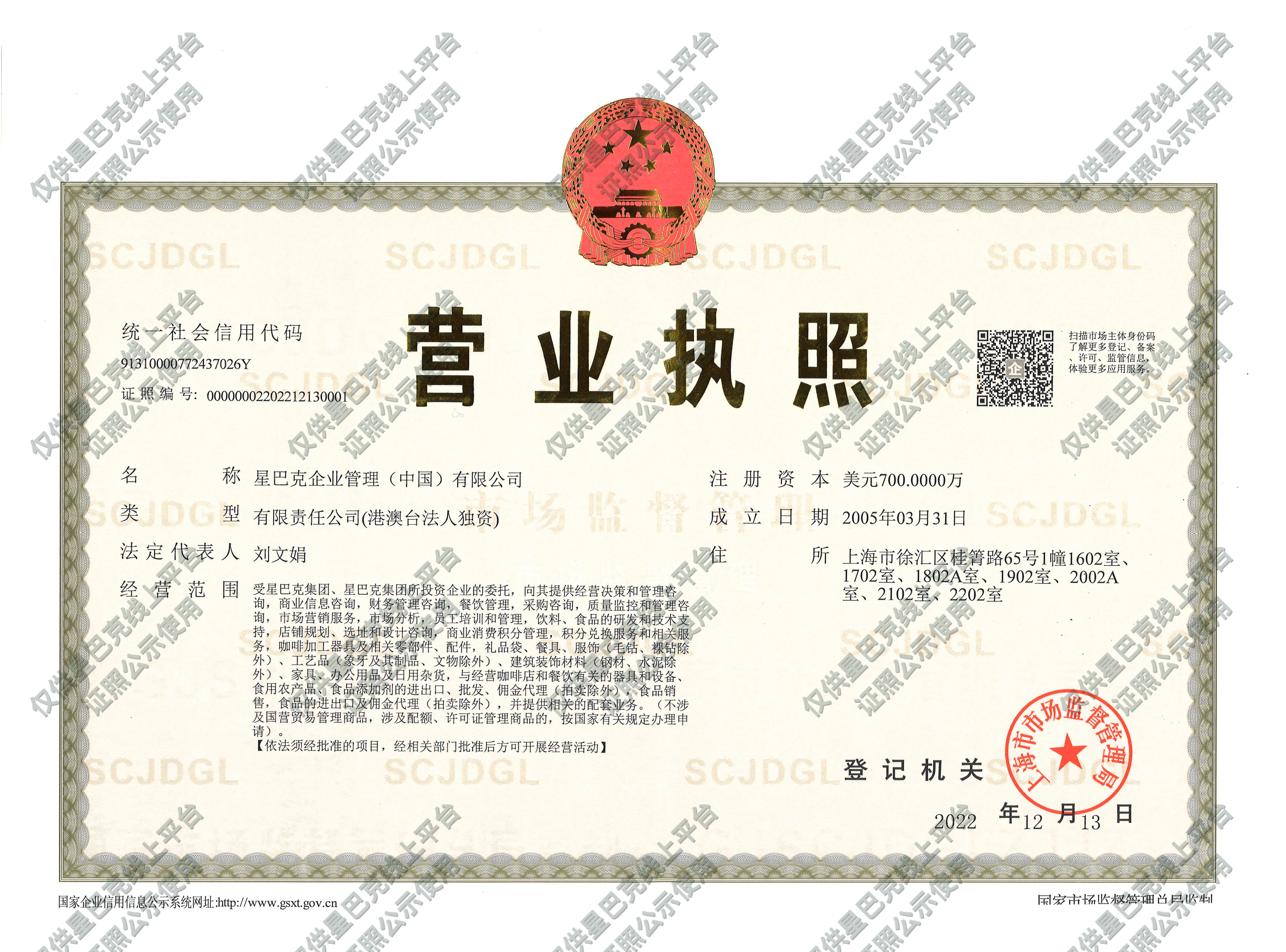星巴克企业管理(中国)有限公司